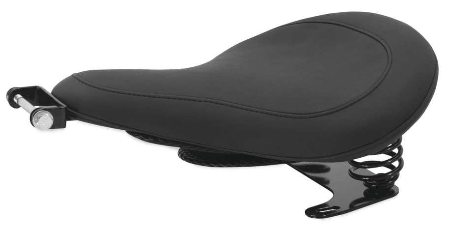 Ride in retro style with the Spring Solo Kit for Harley-Davidson® Dynas. Like all Mustang seats, the solo is proudly handcrafted in New England. Hardware is black powder-coated for long-lasting looks, and installs to stock mounts with no drilling or modifications. Includes a handy under-seat pouch for storing small essentials.